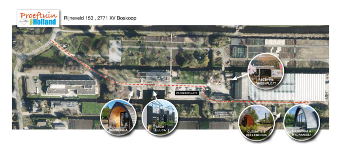 Een bijzonder verblijf verdient een bijzondere plek: de vakantiehuizen zijn gelegen op de Proeftuin van Holland, een mooie plek waar natuur, recreatie en educatie voor de consument en sierteeltsector centraal staan. De locatie kent een rijke geschiedenis in de boomkwekerij/sierteeltsector als voormalig Proefstation voor de Boomkwekerij. Er is nog altijd een grote assortimentstuin te vinden waar veel verschillende bomen en planten te zien zijn. Ontdek de omgeving op de fiets of door een mooie wandeltocht te maken. Er zijn diverse mooie wandel- en fietsroutes in de omgeving uitgestippeld. Daarnaast valt er nog veel meer te zien in de omgeving. Bezoek en bewonder wat het Groene Hart te bieden heeft! Op de locatie zijn een streekwinkel en twee horecagelegenheden gevestigd, hier kunnen bezoekers terecht voor koffie/thee, ontbijt, lunch, diner en borrel.